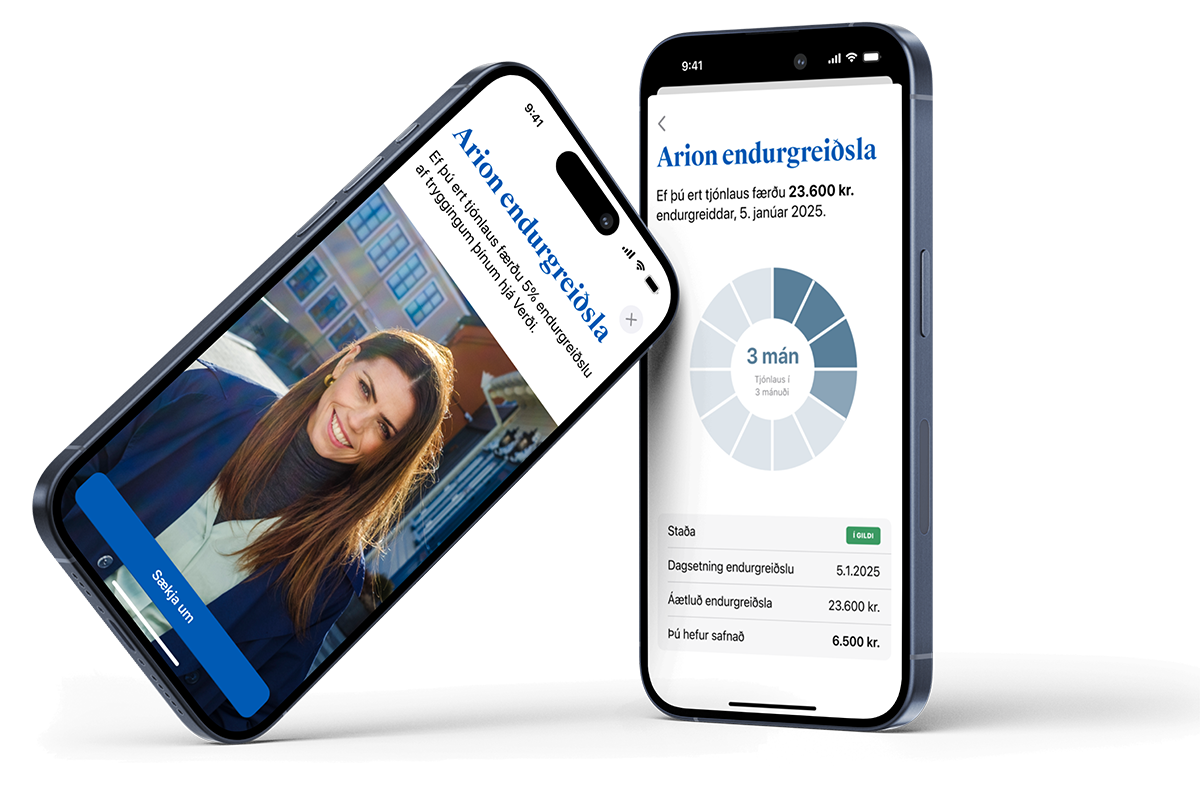 Það einfaldar lífið að vera með allt á sama stað. Árangur þinn skiptir okkur máli og viljum við að þú njótir góðs af því að vera með fjármálin og tryggingarnar á sama stað. Þar af leiðandi færðu betri kjör ef þú ert bæði hjá Arion og Verði.