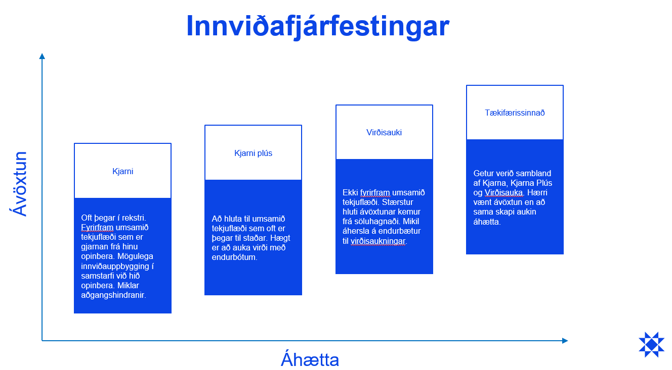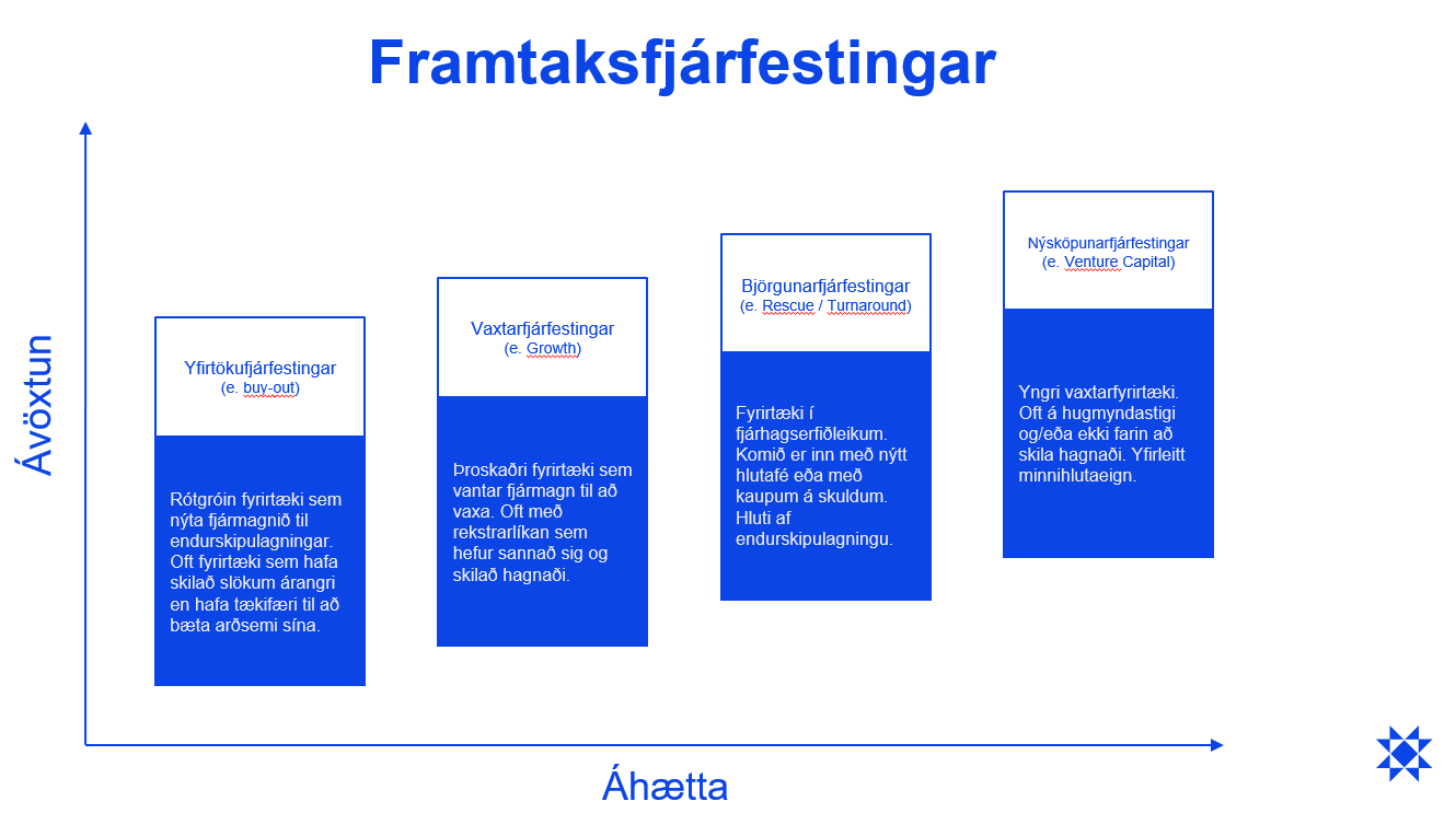 Í mörgum tilvikum kemur ábati þessara fjárfestinga fram á síðari stigum líftímans, fjárfestingarnar geta skilað lágri eða neikvæðri arðsemi fyrst um sinn og því er rétt að meta árangur þessara fjárfestinga yfir lengra tímabil fremur en frá ári til árs. Á móti væntingum um góða ávöxtun getur áhætta verið nokkur. Viðbúið er að einhverjar fjárfestingar geti gengið verr en væntingar standa til en þá vegur áhættudreifing innan fjárfestingaflokksins töluvert og meginmarkmiðið er ávallt að eignaflokkurinn í heild skili ásættanlegri ávöxtun.