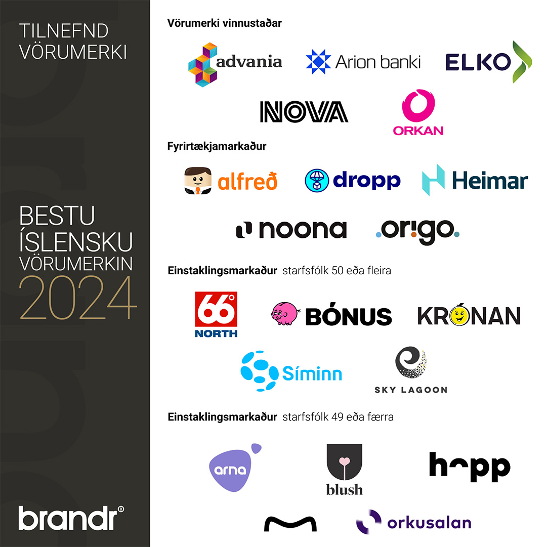Brandr er íslensk vörumerkjastofa sem sérhæfir sig í stefnumótun og þróun vörumerkja. Á hverju ári veitir brandr viðurkenningar fyrir bestu íslensku vörumerkin, með áherslu á nýstárleg og árangursrík vörumerkjamál. Hér má lesa sér frekar til um verðlaunin og þau fyrirtæki sem tilnefnd eru í öðrum flokkum.