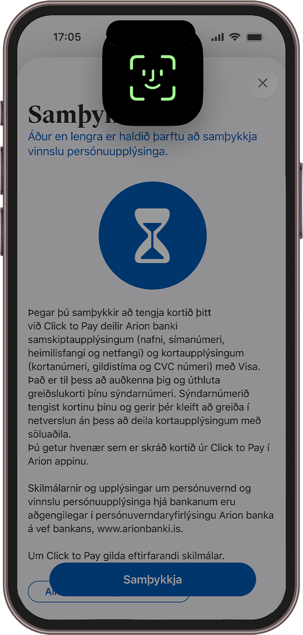 Nú getur þú tengt kortin þín við Click to Pay á einfaldan hátt í Arion appinu.
