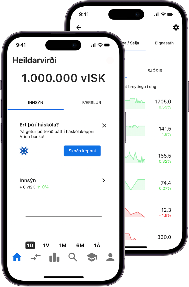 • Aðeins er hægt að kaupa og selja eignir á opnunartíma íslensku kauphallarinnar, sem er frá 9:30 til 15:30 alla virka daga.